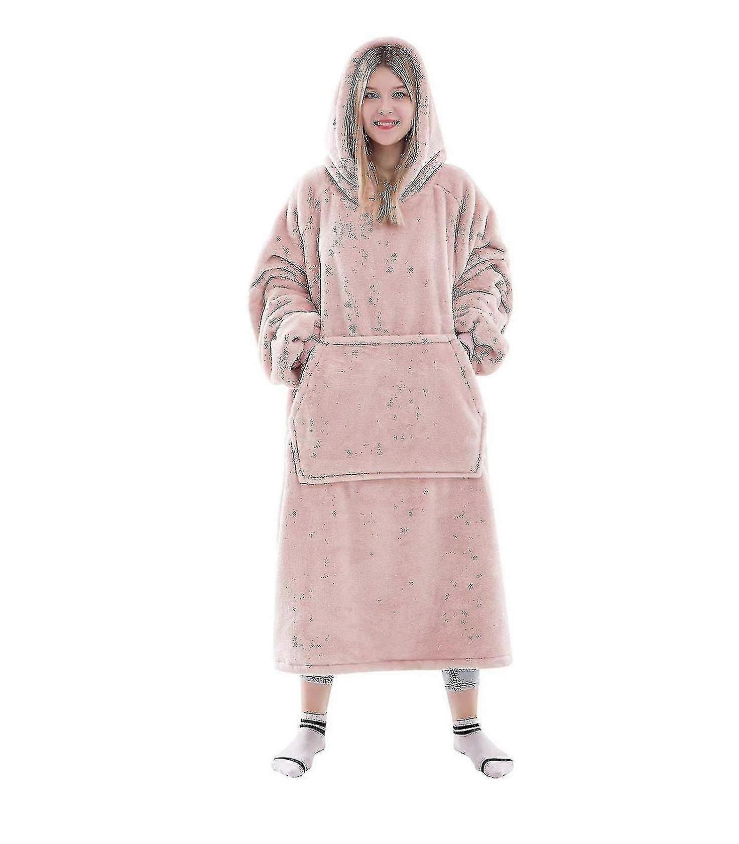 Auspicious-wearable Blanket Sweatshirt, Thick Flannel Blanket With Sleeves And Giant Pocket,pink
