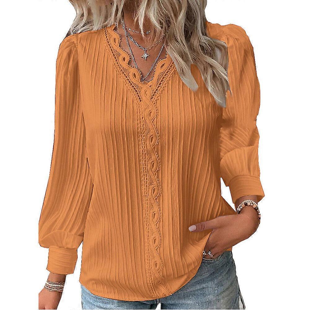 Long Sleeve Blouse Tees V-Neck Tunic Tops Pullover T-Shirts Autumn Solid Color
