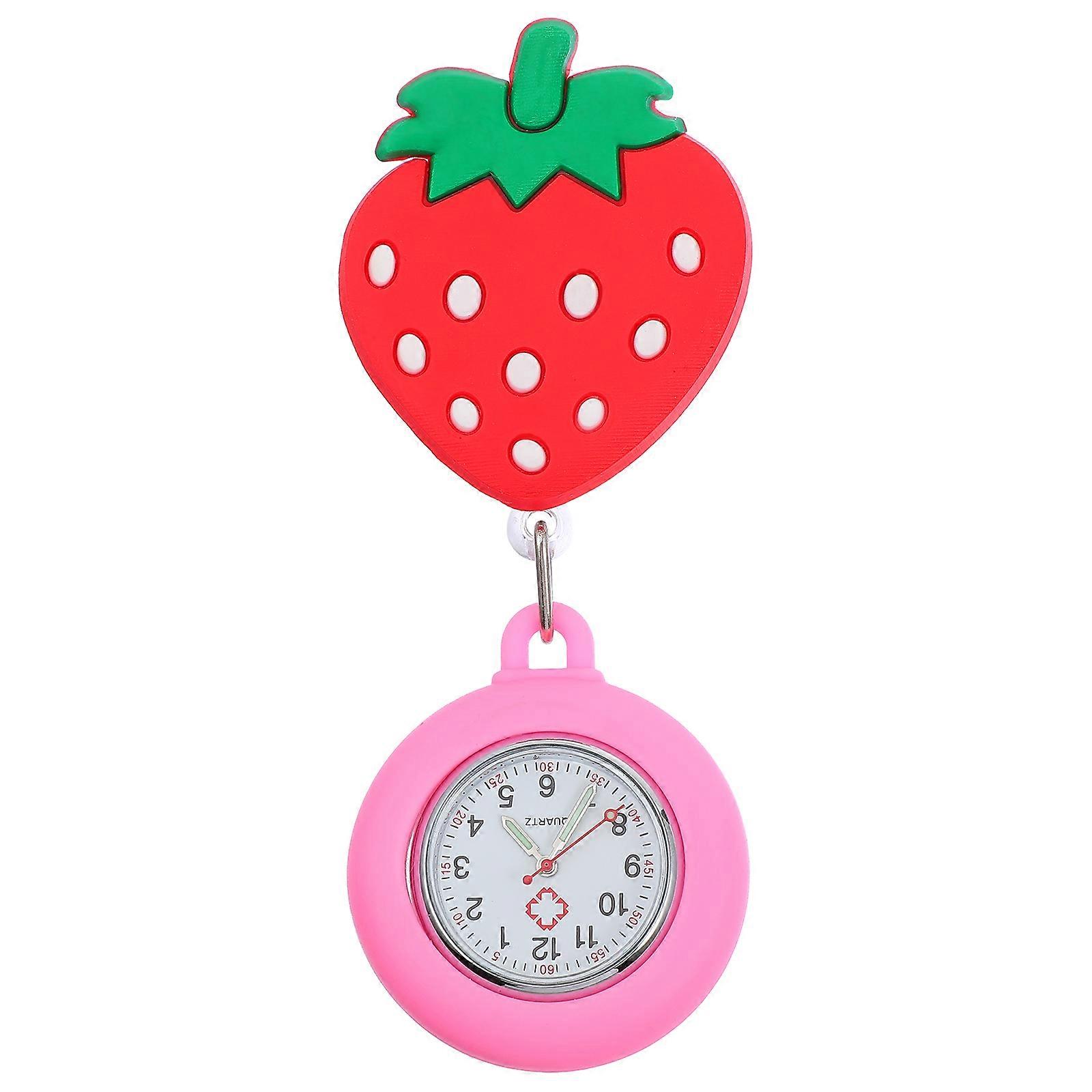 Girls Pocket Watch Strawberry Shape for Hospital Environment Nurses Silicone and Glass Material with Timekeeping 1Pc