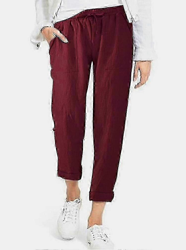 Women's Loose Cotton and Linen Casual Pants with Pockets in Solid Colors