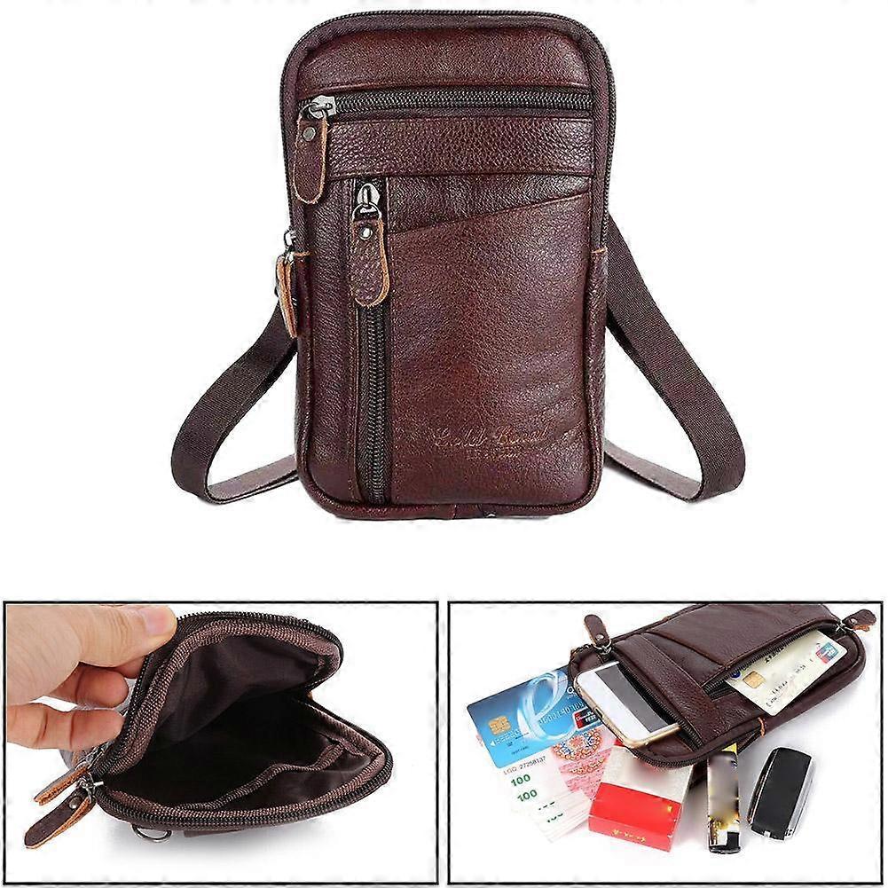 Brown (A) $Vertical Men's Genuine Leather Mobile Phone Bag with Belt Multi-function Single Shoulder Crossbody Anti-theft Zipper Men's Waist Bag
