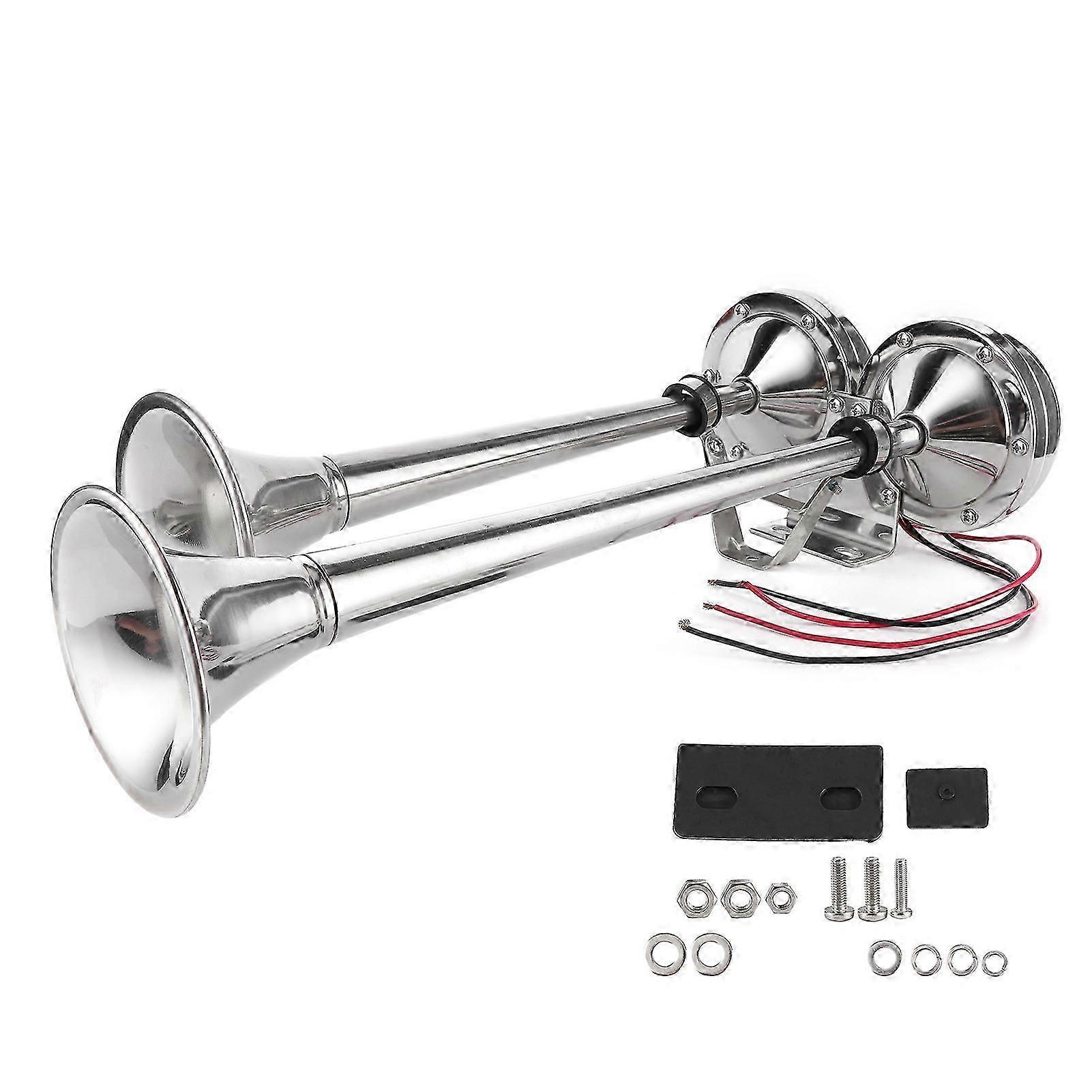 125db Dual Trumpet 12V Small Size Stainless Steel Electric Horn Marine Grade 380Hz Boat