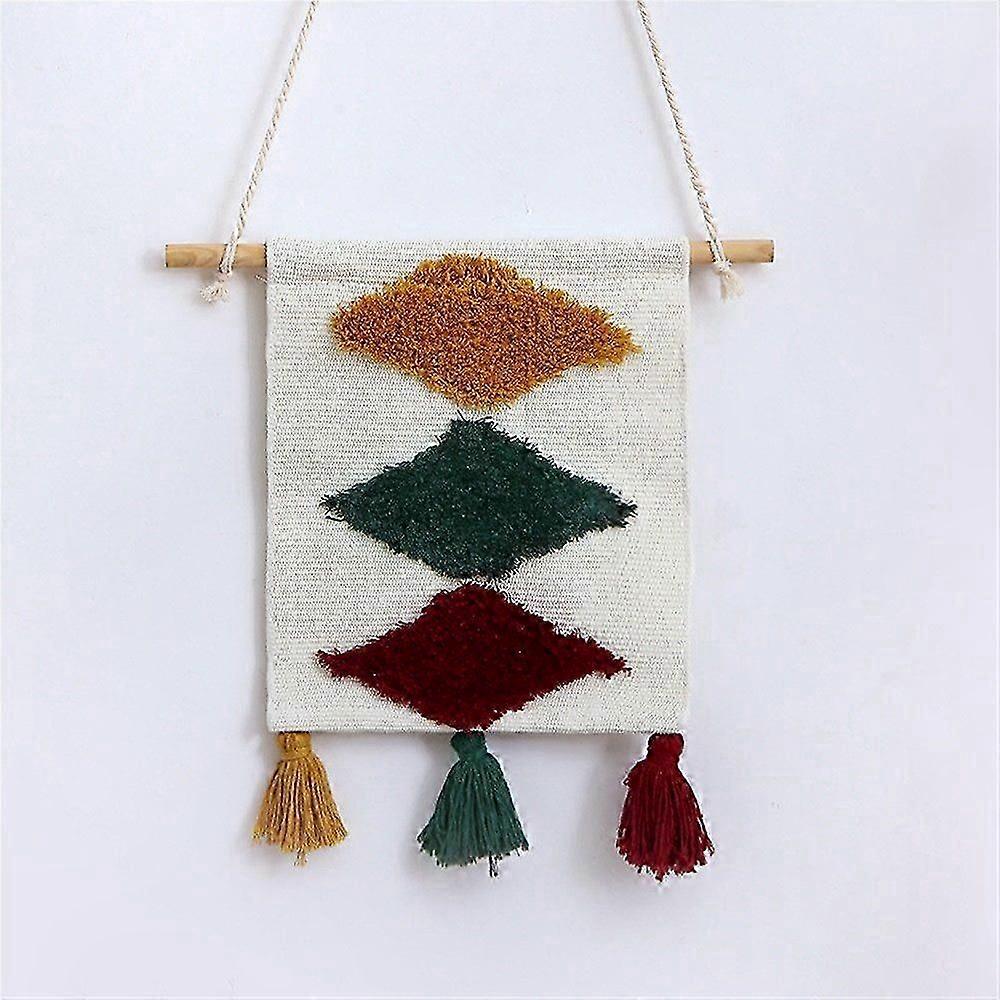 Boho Tassel Wall Hanging Tapestry with Wooden Stick, 25x30cm Decorative Art Piece