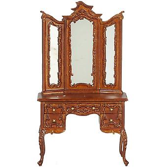 بيت الدمى الفيكتوري الجوز الثلاثي مرآة خلع الملابس الجدول Jbm أثاث غرف النوم