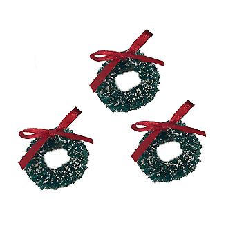 بيت الدمى ثلجي أخضر مزين عيد الميلاد إكليل باب مصغر ملحق 1:12