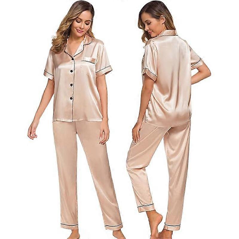 Comfortable women's pajamas, satin set, short sleeves, long pants, plus size loungewear, ultra-thin breathable, soft and light transparent