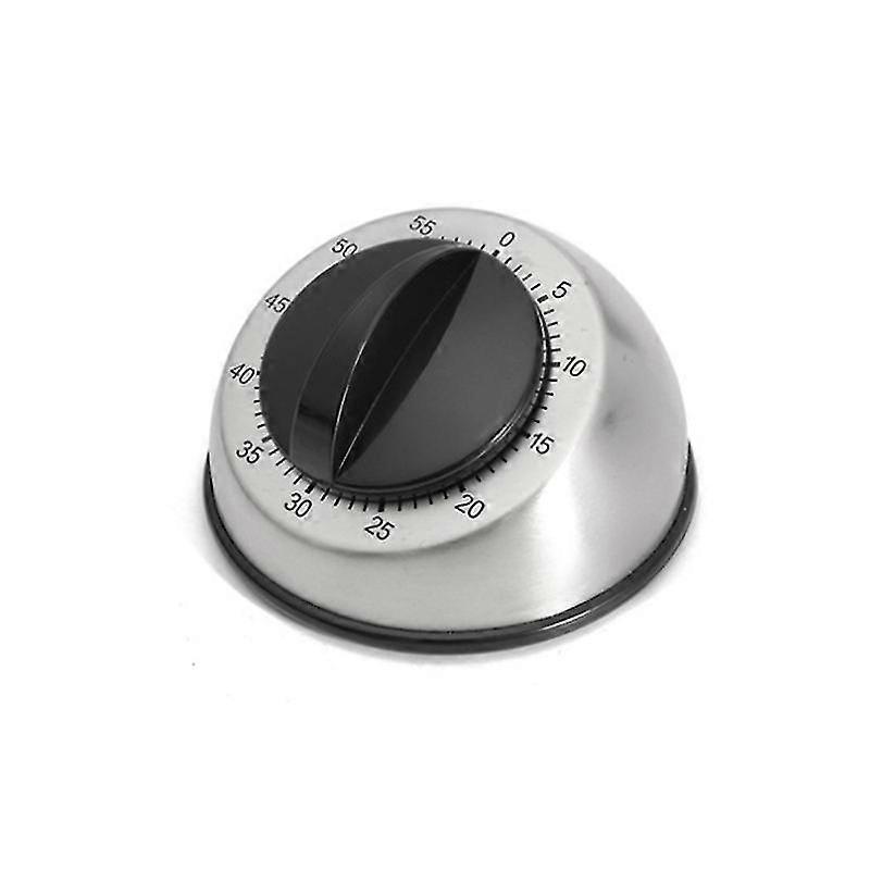 Quality mechanical kitchen timer up to 60 minutes - without battery - 2 year warranty, stainless steel, black/silver