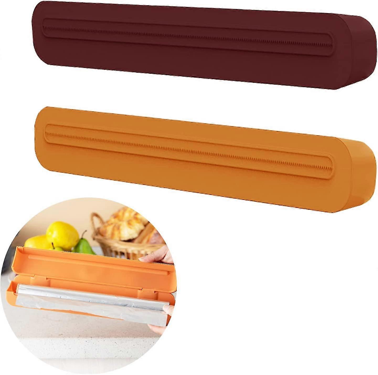 Cling Film Cutter, 2 Pcs Cling Wrap Dispenser, Cling Wrap Dispenser For Home Kitchen, Restaurant(orange/purple), Purple, Orange, 34*5*3cm