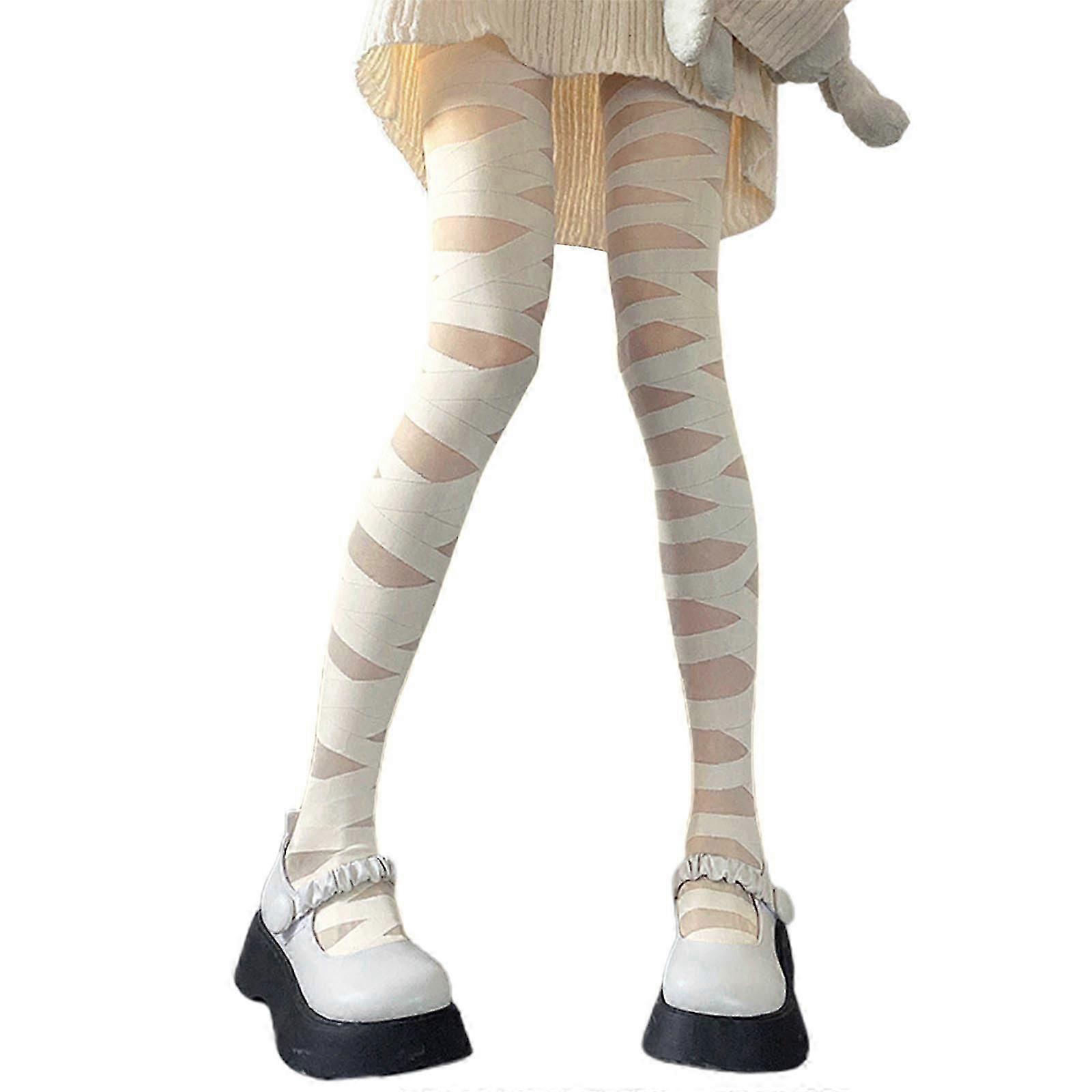Hollows Criss-Cross Sock Sexy Bandage Long Bodycon Pantyhose Black Sparkles Party Clubs Wearing for Womens Girl One Size