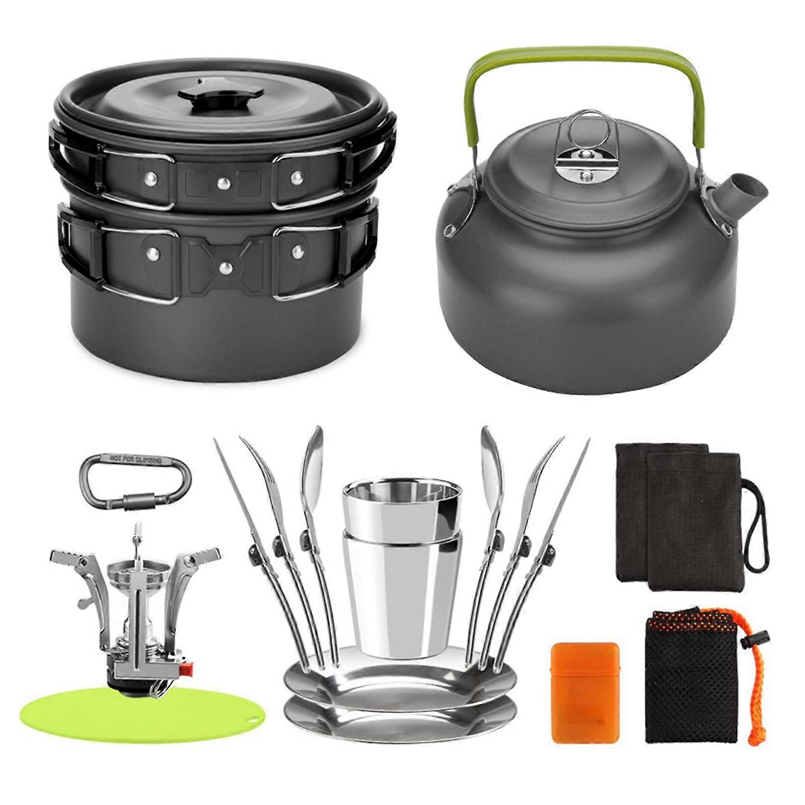 Outdoor Camping Cookware Mess Kit Pot Pan Kettle Cooking Set Tableware with Stove Spoon Fork Cutter for Camping Hiking Backpacking Picnic