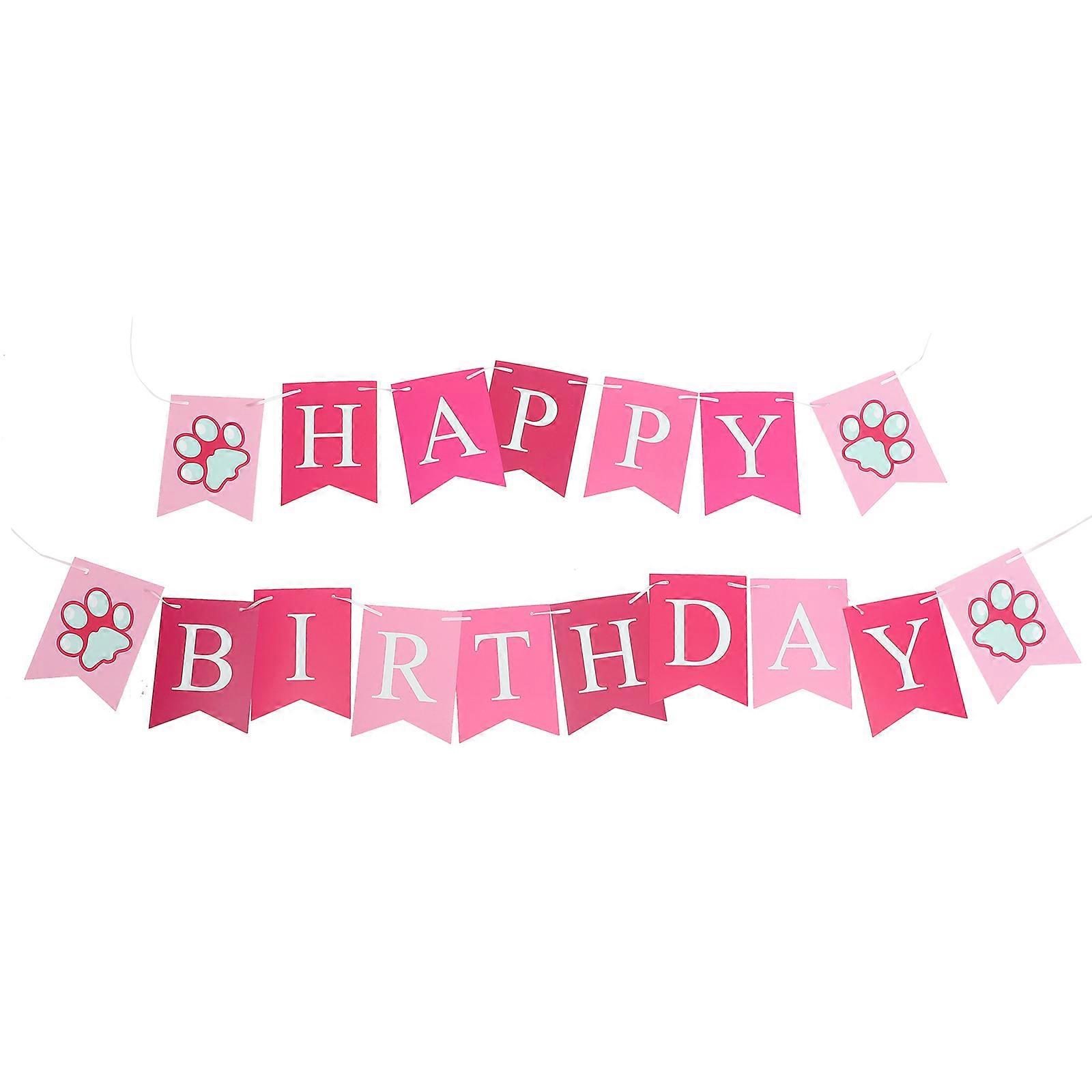 Dog Themed Birthday Decorations Pet Dog Happy Birthday Banner Pink Rectangular Fashionable For Dog Birthday Party 1Set