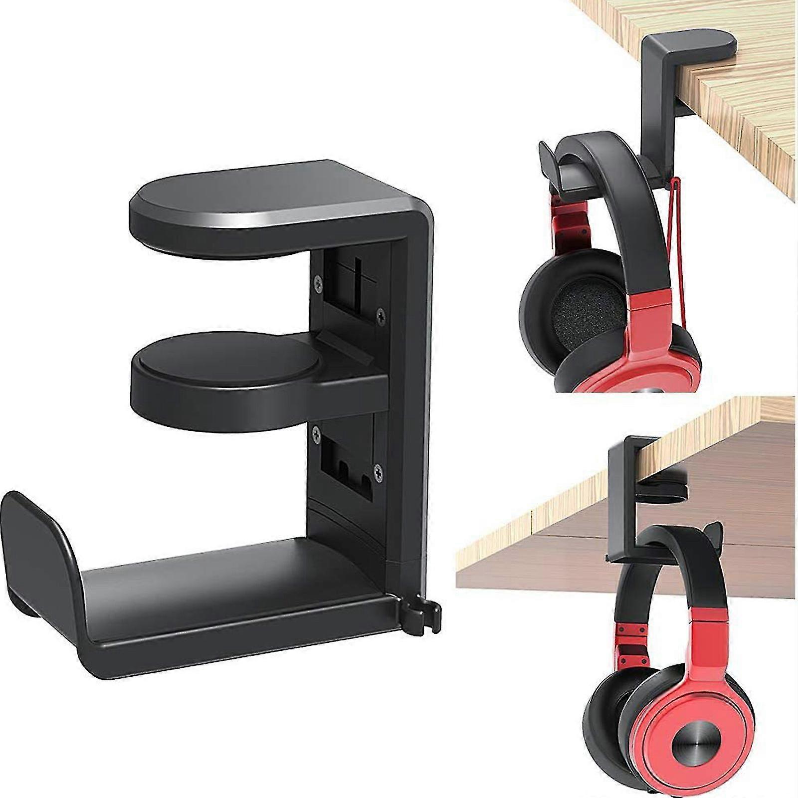 Under Desk Headphone Stand, Pc Gaming Headset Hook Mount With 360 Degree Adjustable Rotating Arm Clamp And Built-in Cable Clip