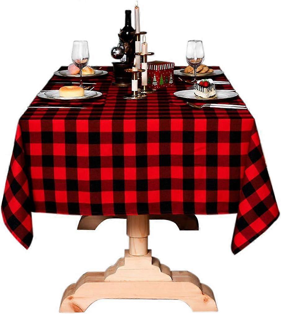 Check Tablecloth for Christmas Party, Cotton Linen Material 60x84 Inches, Festive Red and Green Colors