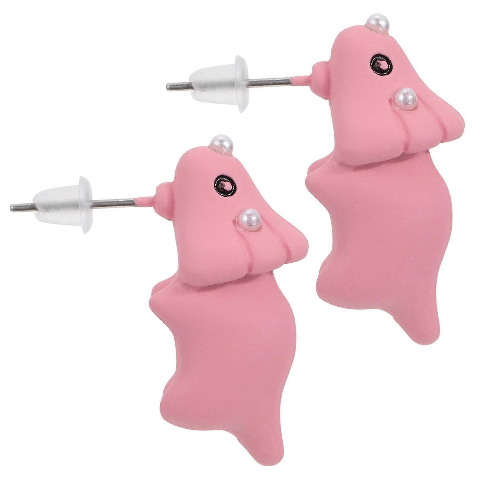 Trendy Animal Shape Ear Studs 1 Pair Chic Ear Jewelry Suitable For Daily Wear In Elegant Pink Color