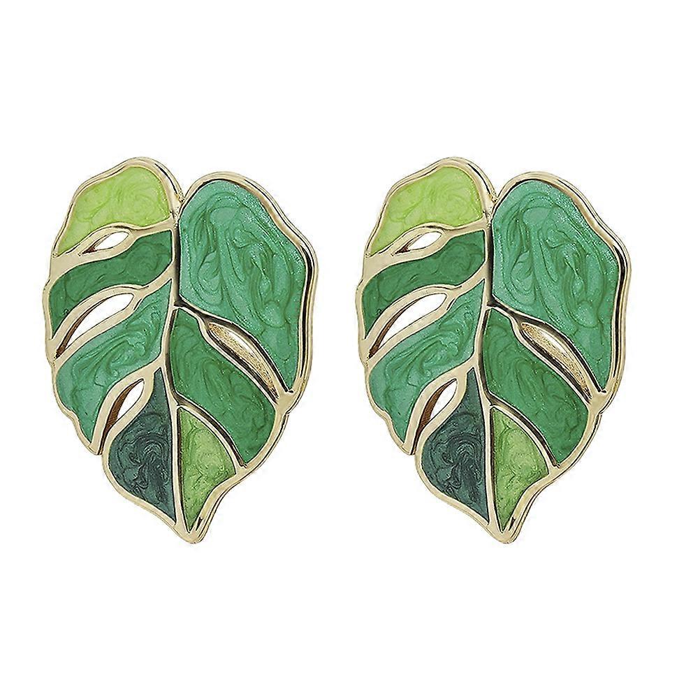 Leaf Shape Alloy Ear Studs for Women, Lightweight Comfortable Earrings with Oil Dripping Design, Fine Workmanship Party Accessories