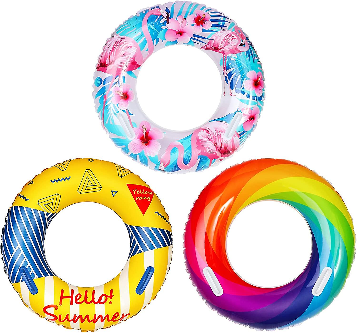 Upgraded Inflatable Pool Floats with Handle Design - 3 Pack Swim Tube Ring Toys for Kids Adults Toddlers Swimming Pool Outdoor Beach Party