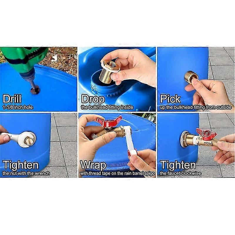 Solid Brass Bulkhead Fitting, 3 Sets 3/8 Inch Female 1/2 Inch Male Solid Brass Water Tank Connector