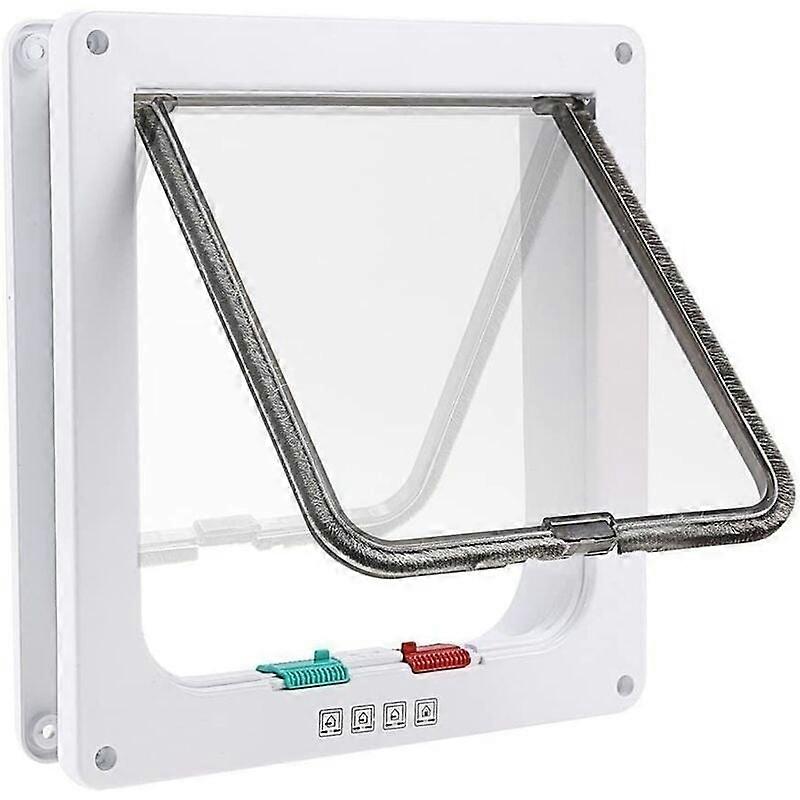 Made of ABS plastic, durable, scratch resistant from your cat/small dog. In addition, it is easy to clean and can be used for a long time. 4 locking modes: open, closed, entry only or exit only, allowing your cat to come and go at will without losing control of their comings and goings This magnetic cat flap is suitable for windows, glass doors, brick walls, PVC, uPVC and metal doors < p>With this pet door, you can monitor your pet's comings and goings and free up your time to open the door without worrying about your pet. At the same time, your pet will enjoy a large free house Thoughtful design: The transparent flap allows the pet to see through the door. The outer screen is water resistant. The brush strip reduces the sound of closing the door