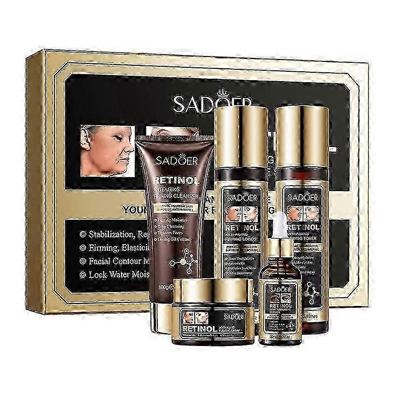 Retinol Skin Care Set Include: Cleanser+Toner+Essence+Lotion+Cream, Oil Control, Hydrating, Refining, Radiant Skin, Valentine's Day Gift Set