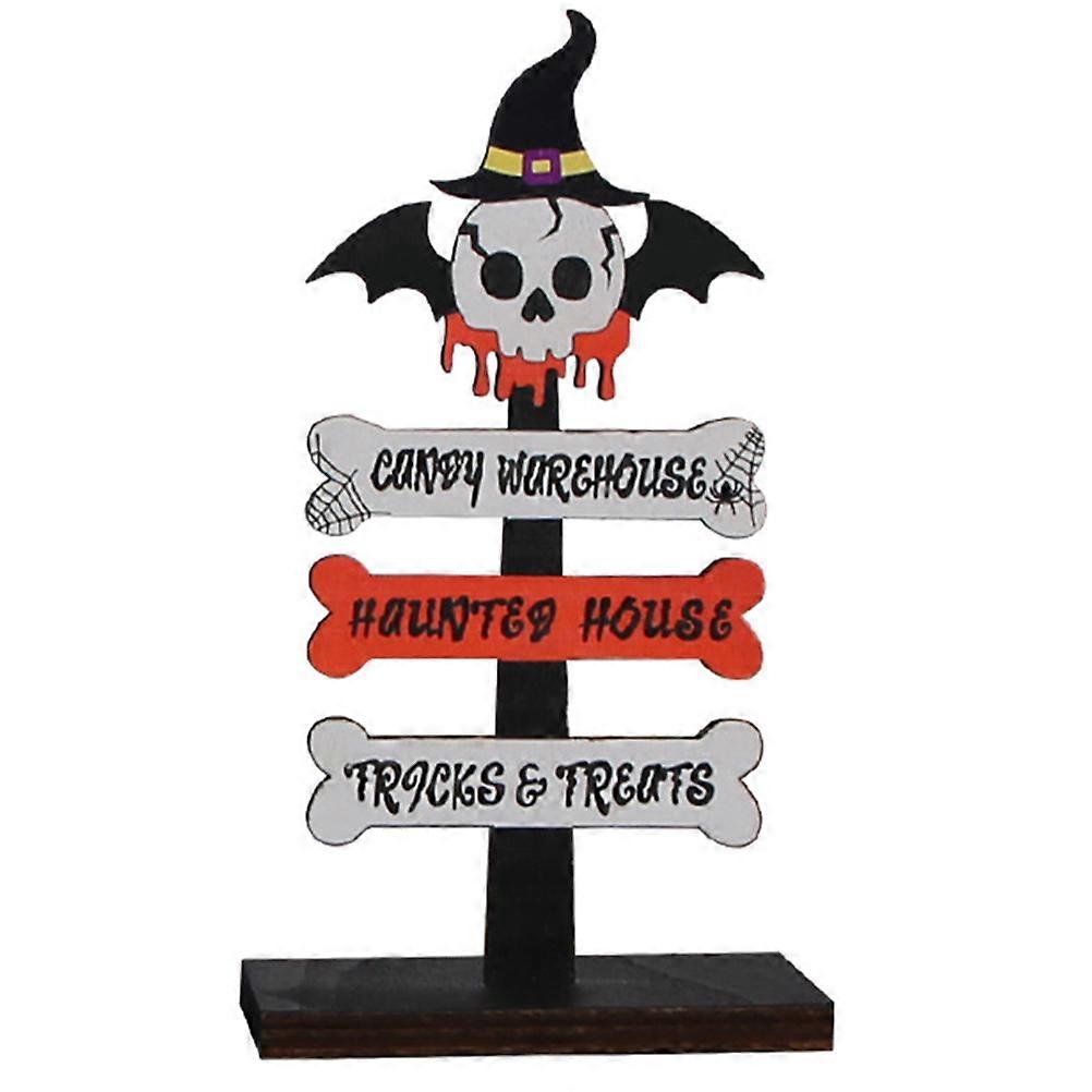 Skull Design Halloween Table Decor Wooden Plaque For Shopping Mall Decor In Assorted Color 1Pcs