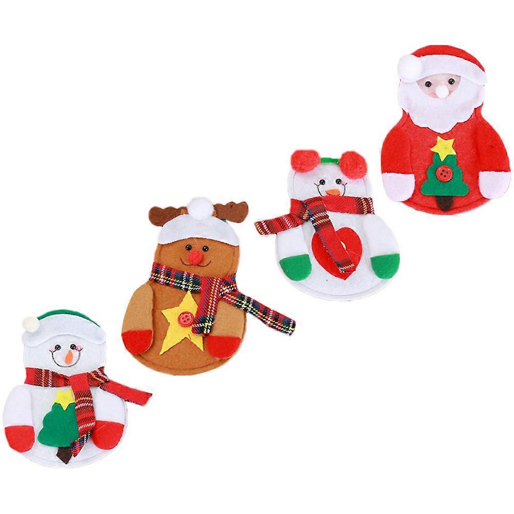 Cartoon Design Christmas Cutlery Holders 4Pcs Assorted Color For Families Table Decoration At Holiday Parties
