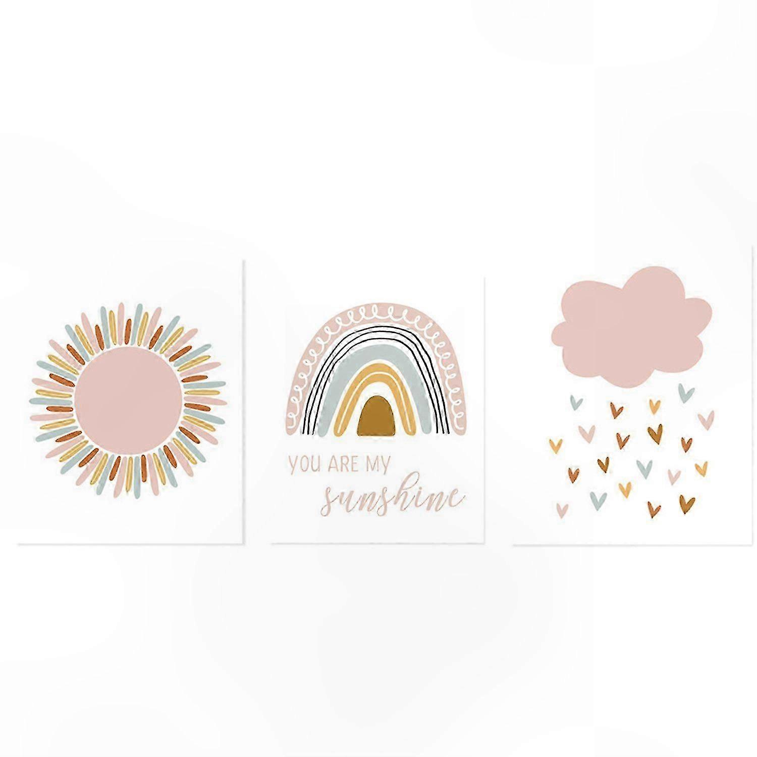 Colorful Nature Wall Art Design Featuring Pink Sun Rainbow and Clouds for Creative Murals