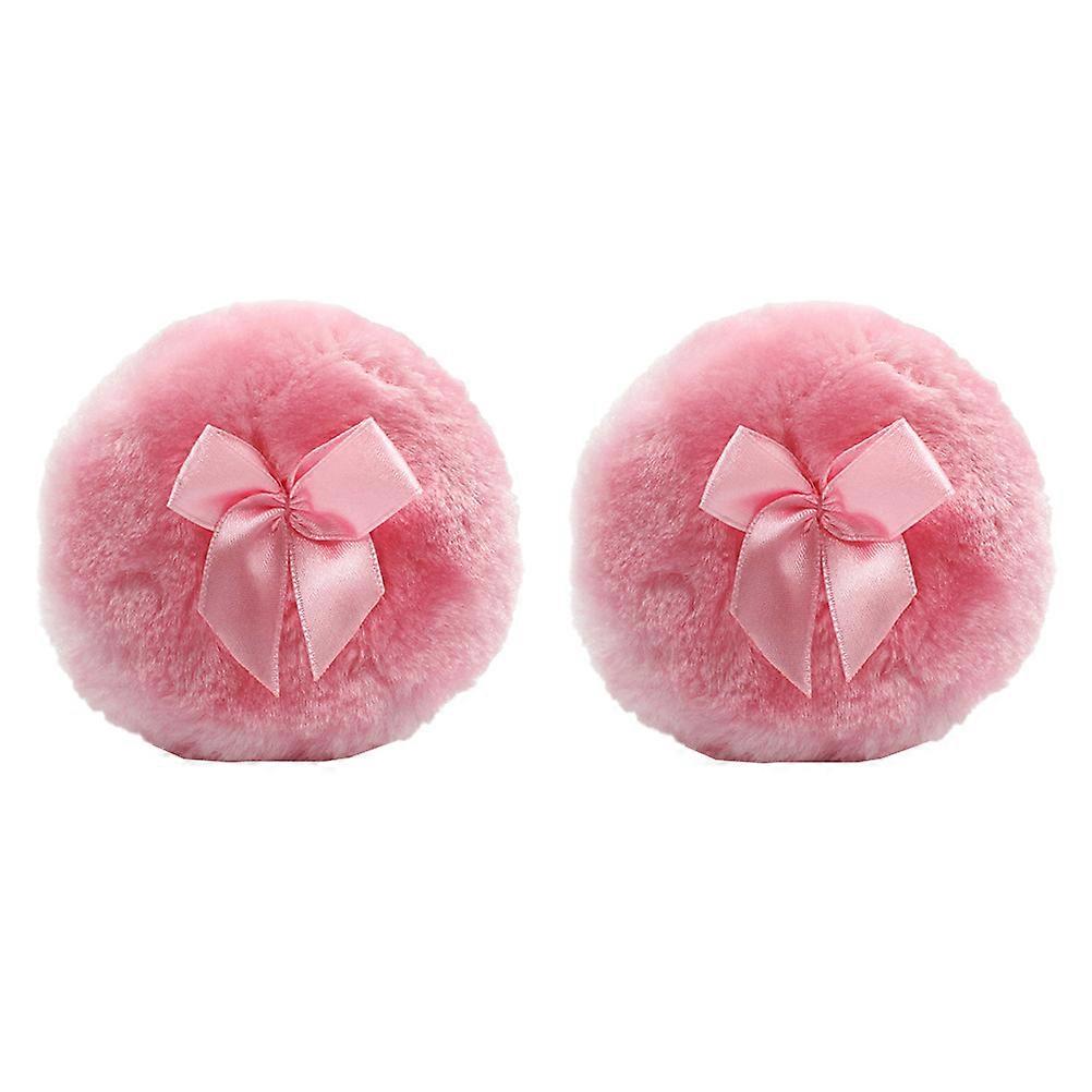 Talcum Powder Application Powder Puff Round Shape Fluffy Design Women Parents Pink 10x10cm 2Pack