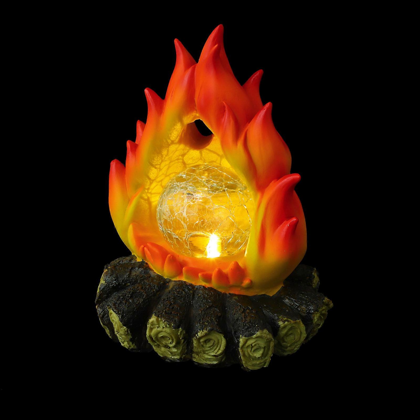 Solar Powered Faux Fireplace Logs LED Night Light Fire Pit Figurine for Halloween Christmas Decor Durable, Weather Resistant with Realistic Flame