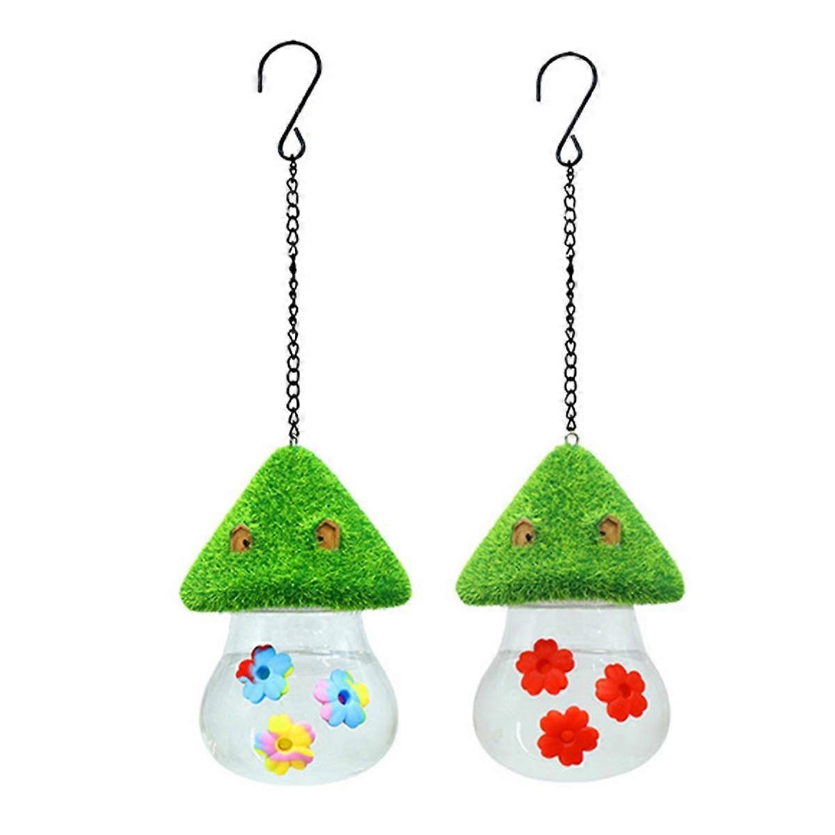 [Bird feeders]-Bird Feeders for Outdoors Hanging, unique green mushroom design, will be a favorite for both you and Birds [Easy to hang and clean]-This Bird feeder comes with a chain on top, it can be easily hang anywhere for garden decoration bird feeder with an S-shaped hook .If it needs to be cleaned, just hose down the entire bird feeder and let it dry. [Attract ]- The non-leaking flowers can be removed for easy cleaning, and the petal-decorated nozzle gives the birds a more intuitive view of the feeder and can clearly see the liquid content inside, making feeding wild birds simpler. [Material]- The small Bird feeders with high-quality ABSbottles and silicone nozzle designed, waterproof, sunscreen, can withstand weather conditions, . flowers: random color, don't accept the specified color Colour:As Shown Material:ABS+resin Size:. 9.5 x 15.5cm(excluding lanyard size) Package Contents: 2 x Bird feeders for outdoors Only the above package content, other products are not included. Note: Light reflection and different displays may cause the color of the item in the picture a little different from the real thing. The measurement allowed error is +/- 1-3cm.