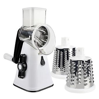 Kitchen Vegetable Slicer With 3 Replaceable Stainless Steel Blades Manual Rotary Cheese Grater With Handle Multifunctional Vegetable Chopper For Cucum