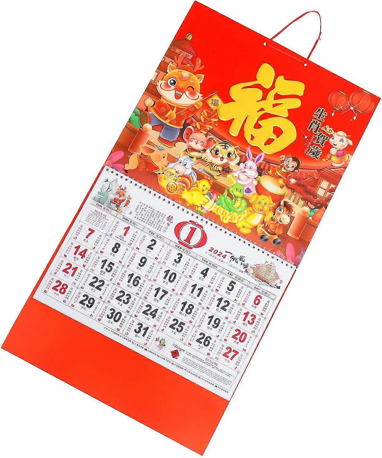 Chinese Lunar Year Calendar 2024 Chinese Traditional Calendar, 1 Pc 2024 Hanging Calendar Traditional Hanging Monthly Calendar 2024 New Year Calendar