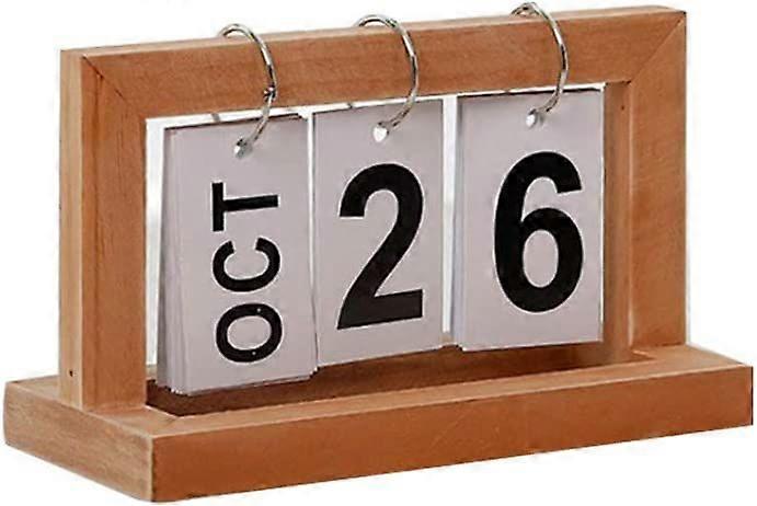 Wooden Flip Calendar Nordic Style Desktop Decor Perpetual Calendar Creative Page Flip Ring Calendar