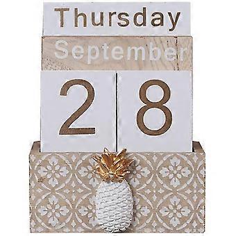 Wooden Perpetual Calendar, Vintage Wood Block Perpetual Calendar Desk Accessory Month Week Date Bloc