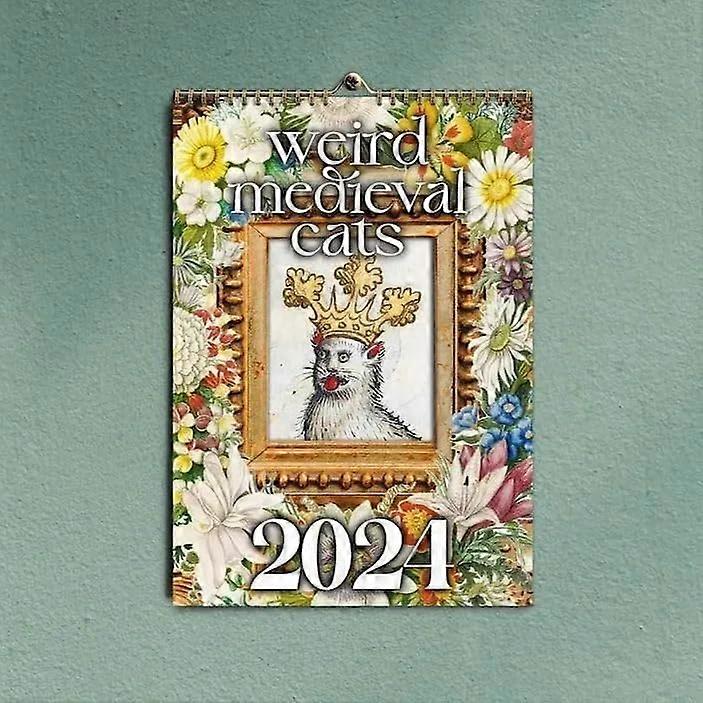 Weird Medieval Cats Calendar, Funny Weird Medieval Cat Calendar 2024, Cat Wall Weird Medieval Caledar Cats Wall Calendar, Cute Calendars Office Home A
