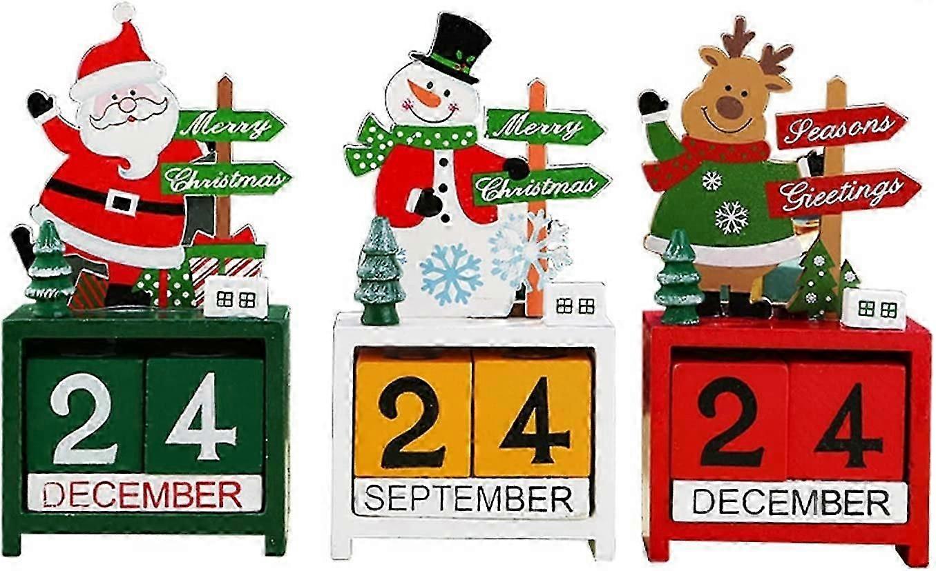 Wooden Advent Calendar 3pcs Christmas Decorations Wooden Calendar Ornaments, Christmas Countdown Table Calendar