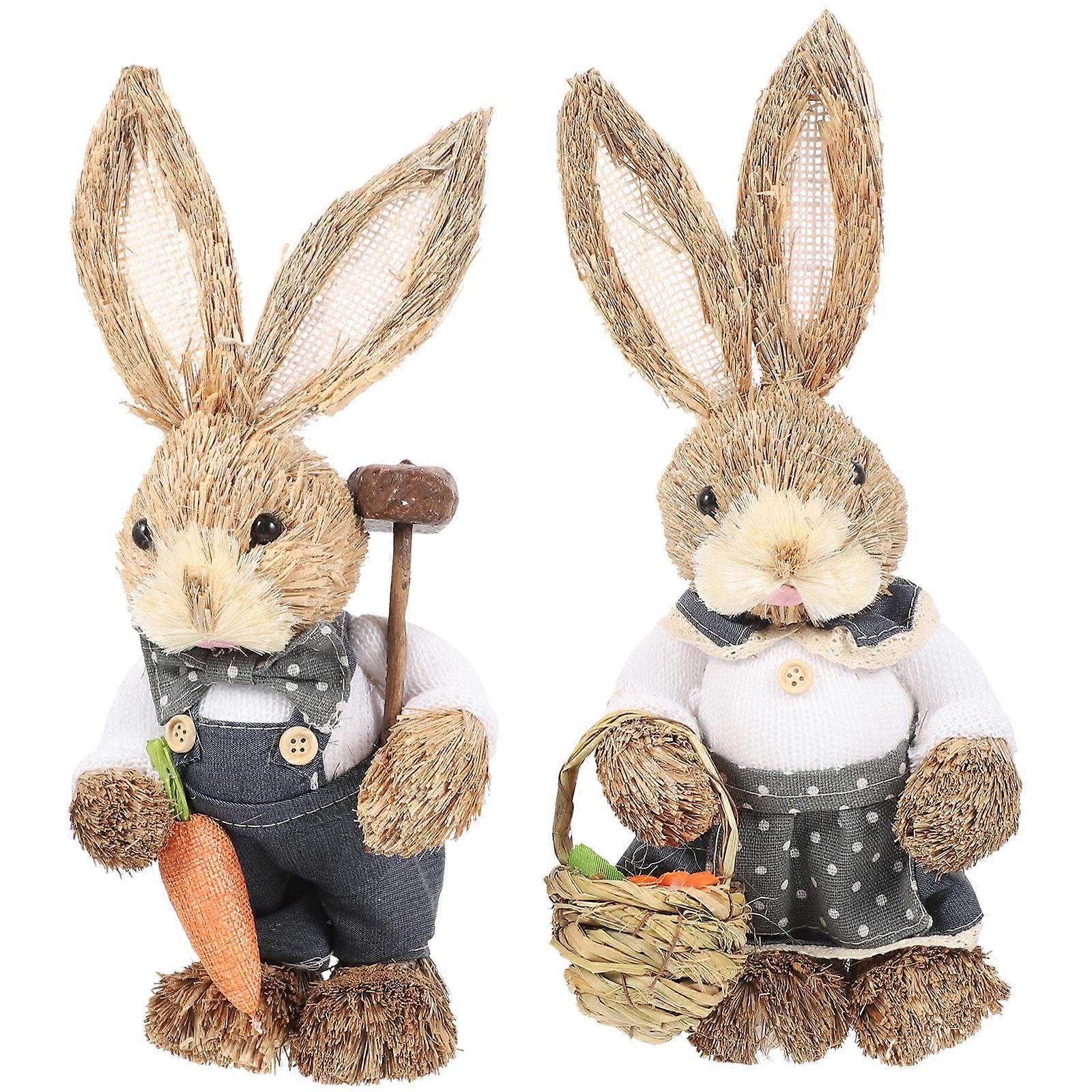 Handmade Woven Grass Bunny Figurines 2pcs Set Easter Rabbit Statues for Home, Garden & Seasonal Decor