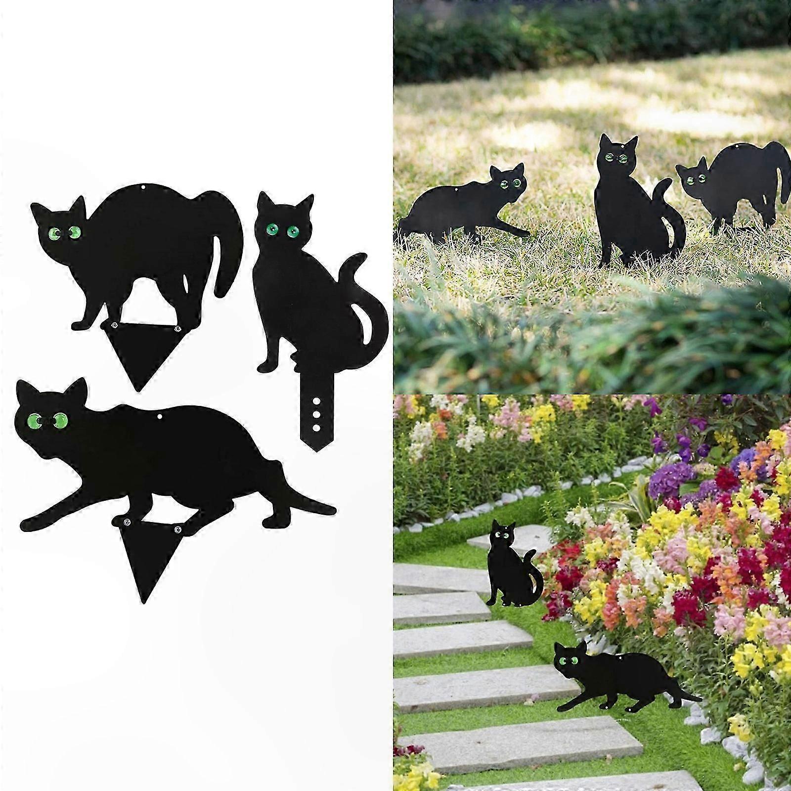 Black Metal Cat Statues with Reflective Eyes for Garden and Yard Decorative Iron Sculptures with Stakes for Outdoor Use
