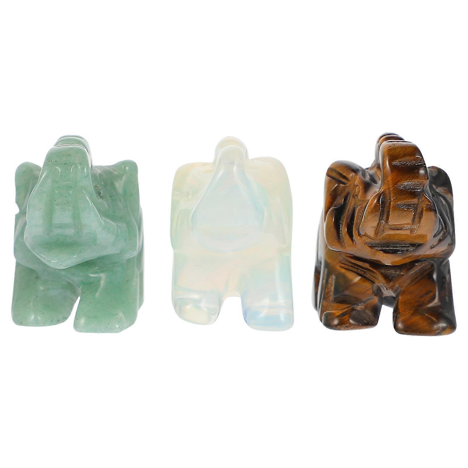 Small Elephant Figurine Aventurine Elephant Statue Home Decor Item For Car Handbag Pocket 3Pcs