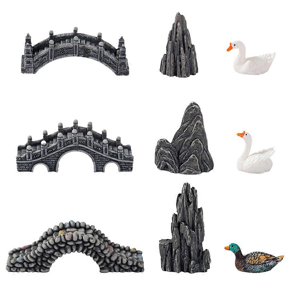 Miniature Goose Figurine Garden Statue with Moss Bridge Decor for Indoor & Outdoor Ornaments – Lawn, Patio, Gift Use