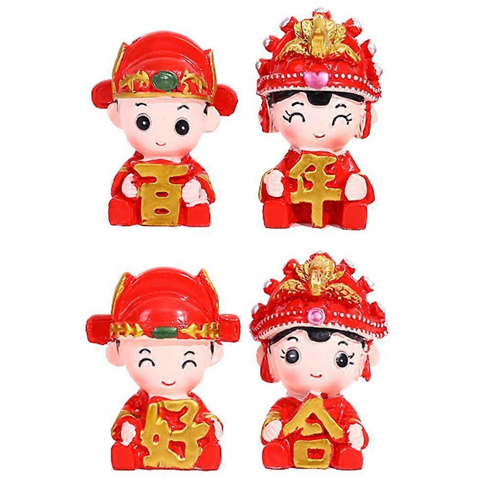 Chinese Figurine Wedding Couple Dolls Cartoon Style Home Decorating Desktop Decor 4.30X3.50X2.50CM Resin 1Set