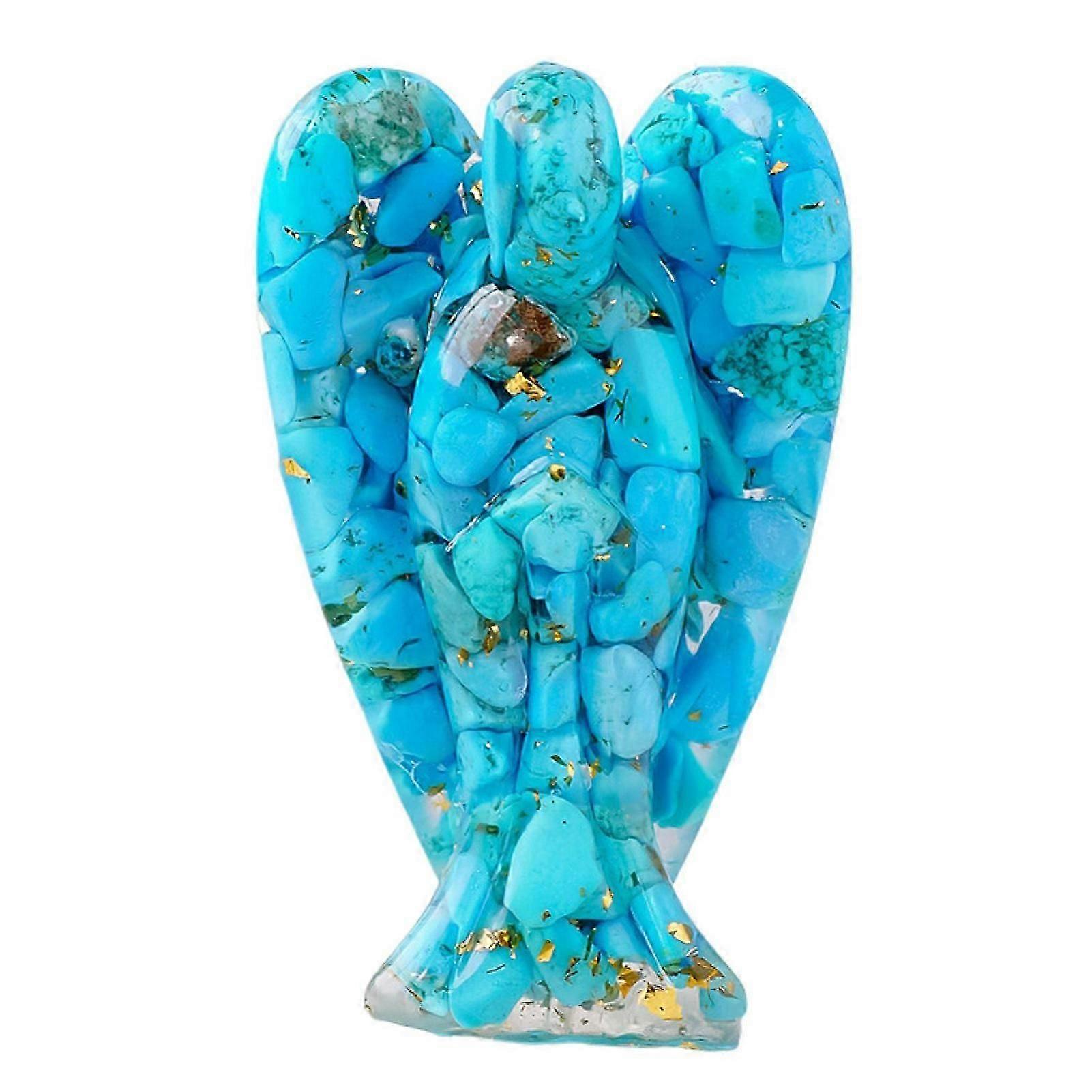 Natural Stone Angel Figurine Positive Healing Energy Hand-carved Colorful Faux Crystal Winged Guardian Angel Statue Home Office Desktop Decoration