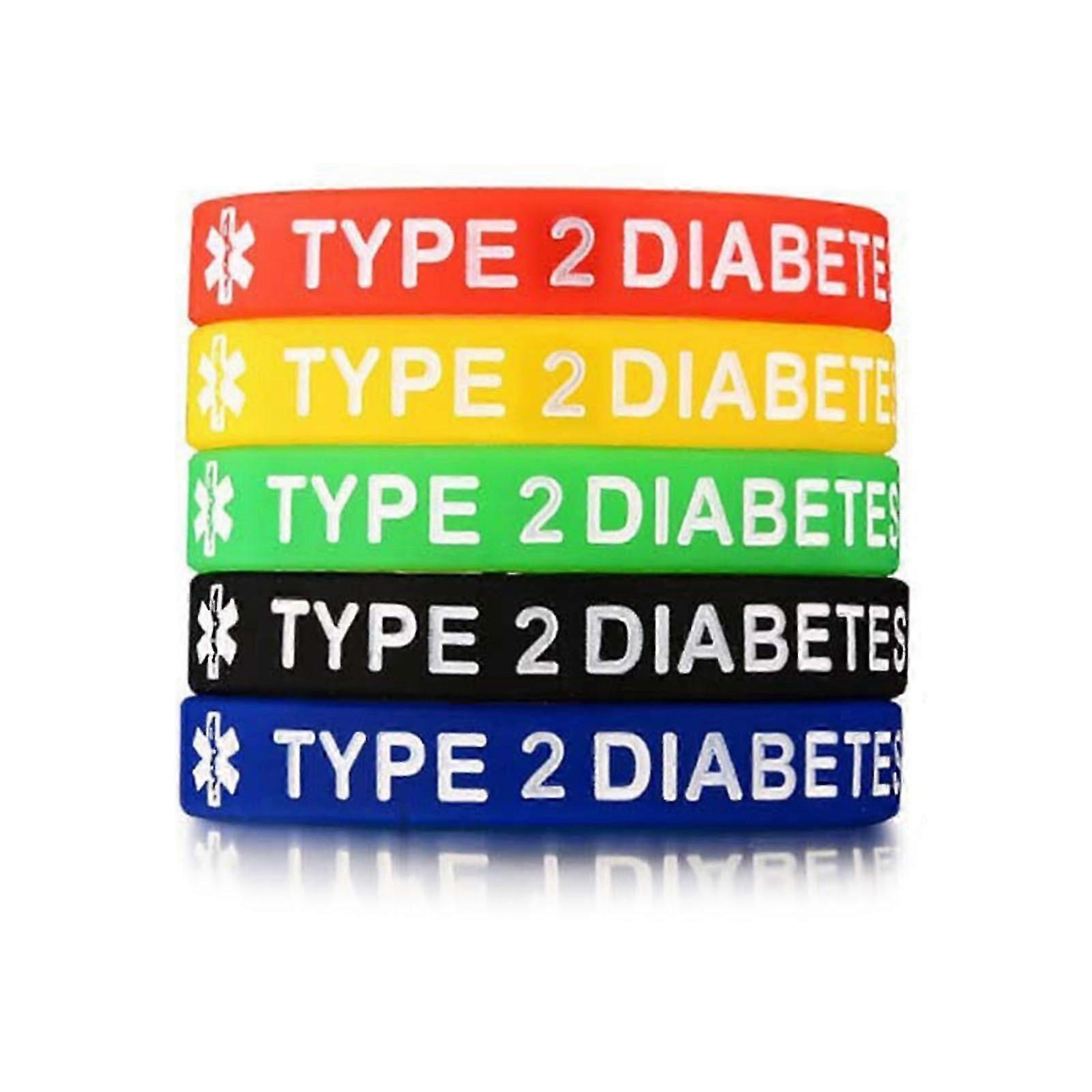 Medical Alert Type 1/2 Diabetes Bracelet 5Pcs Silicone Wristband Lightweight 7.5 Diameter Wearable Band for Kids Adult