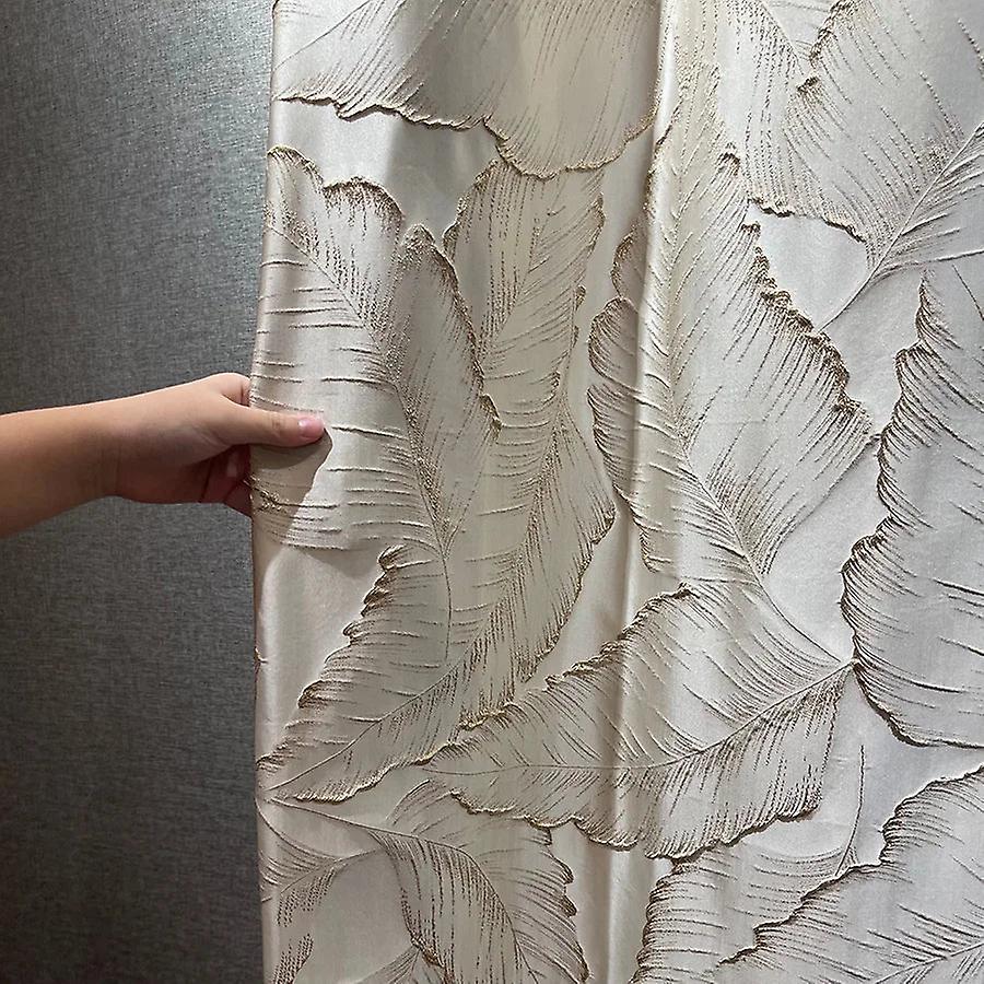 Embossed Stereoscopic Gold Silk Leaves Blackout Bedroom Curtains Luxury Villa Modern Curtain Bronzing Texture Window Drapes