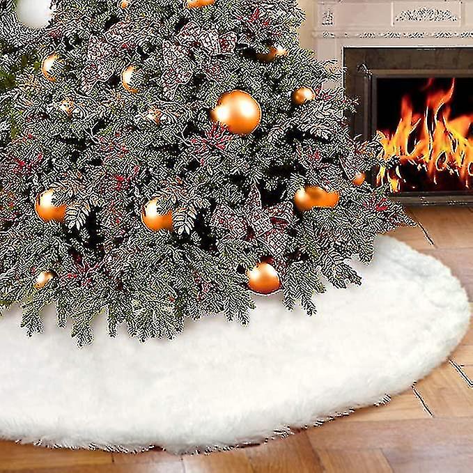 Christmas Tree Skirt, Multi-size Snowy White Faux Fur Xmas Plush Tree Skirt, Winter Christmas Tree Mat, Holiday Party Christmas Tree Decorations