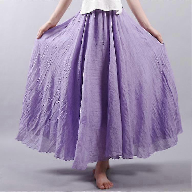Linen maxi skirt for women - double layer pleated boho beach dress