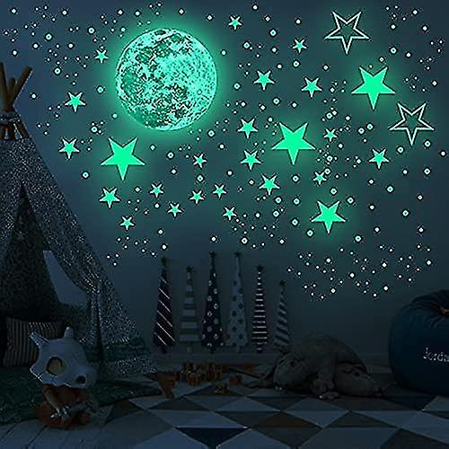 Glow In The Dark Stars For Ceiling, Glowing And Realistic Stars And Full Moon Wall Stickers For Starry Sky, Luminous Adhesive Wall Decals Ceiling Star