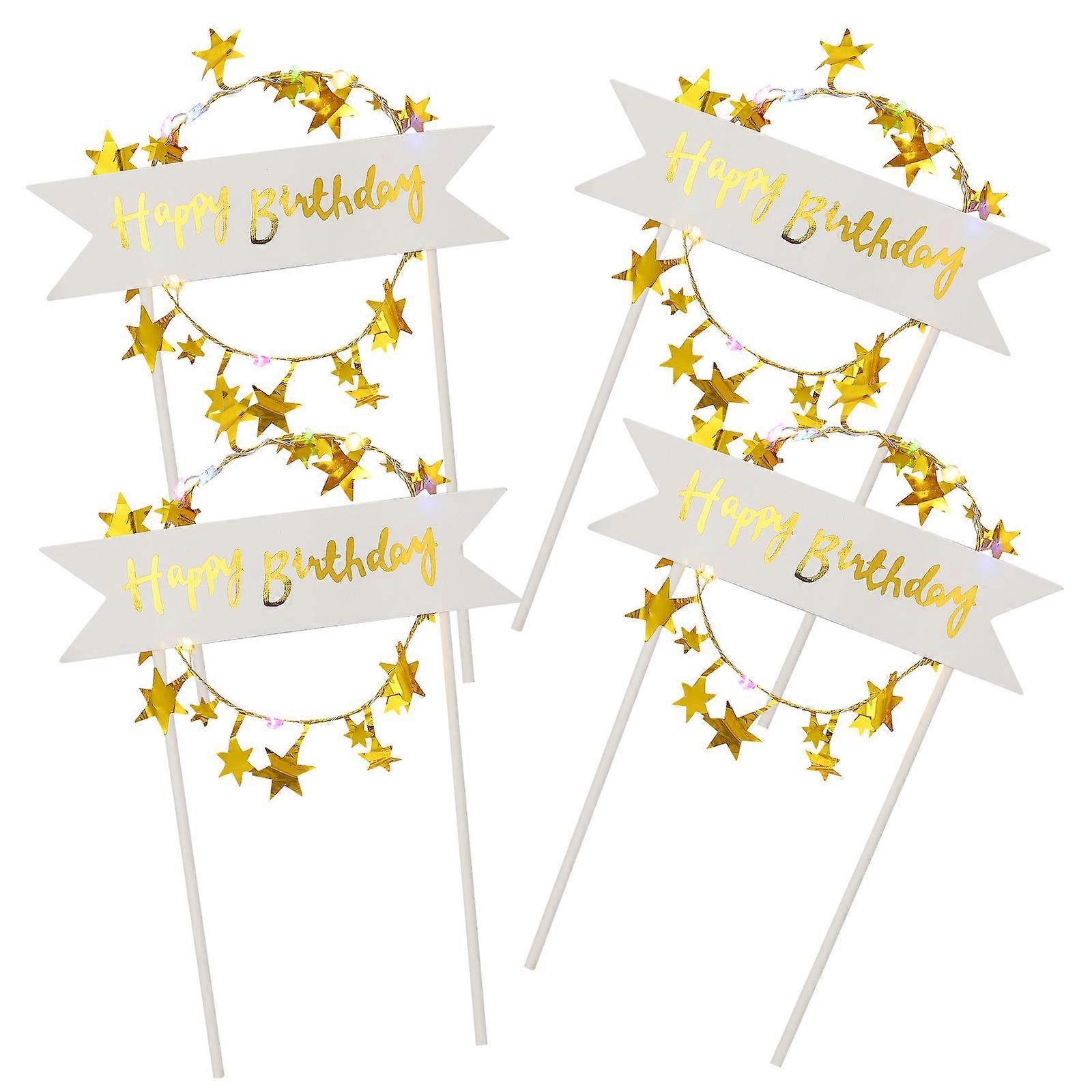 Glow Cake Toppers Decorations For Birthdays And Celebrations Assorted Color Star Shape 4Pcs