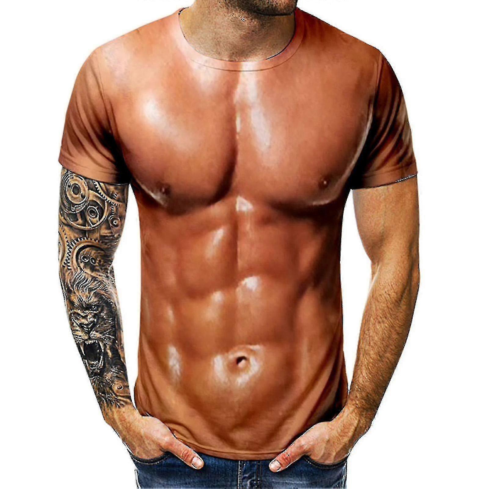 Men's 3d T-shirt Bodybuilding Simulation Muscle Shirt Nude Chest Muscle T-shirt