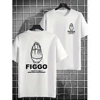 تي شيرت رجالي Y2K جرافيك بأكمام قصيرة - جريئة FIGGO بطبعة نخيل وتصميم نص ألماني ، مزيج بوليستر مسامي ، قابل للغسل في الغسالة -SSFHK168
