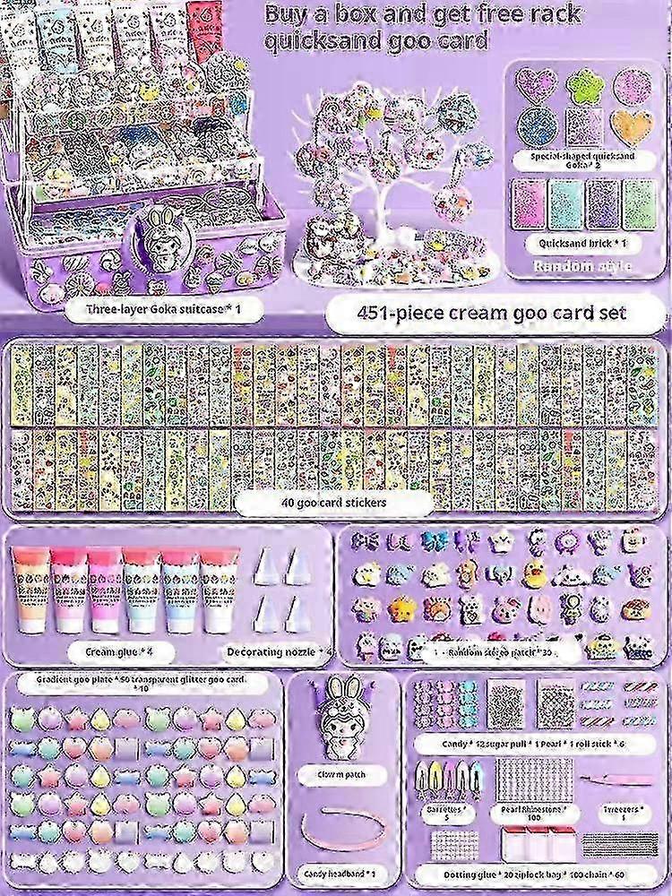 Three Layer Storage Box Cream Gum Goo Kit Complete Stationery Pocket Sticker Diy Quicksand Goo Goo Sticker Kit Girls Toys